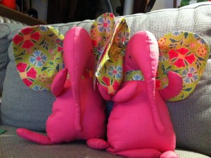 These sweet little guys are from the Elodie the Elephant pattern in One-Yard Wonders: 101 Sewing Fabric Projects.