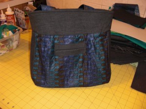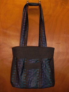 I used the Folklore bag pattern from One-Yard Wonders: 101 Sewing Fabric Projects, and added a double-welt pocket from the great pocket tutorials at Ikat Bag.