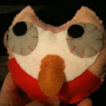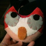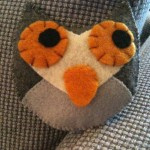 You can stuff the owl with fiberfill or optionally with plastic beads or rice. If you are filling the owl with rice or beads it is recommended that you make an inner pouch out of scrap fabric to prevent spills and leakage. Keep in mind if you fill your owl with rice he will not be washable, but you can pop him in the microwave for about a minute and use him as a heating pad. Don’t cook him too long or you risk a fire!