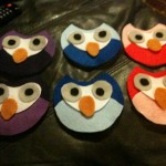 1. Cut out owl pieces from the felt. Two pieces of felt are enough to make two Owls in opposite colors, or you can print the pattern 50% larger to make a jumbo owl.
